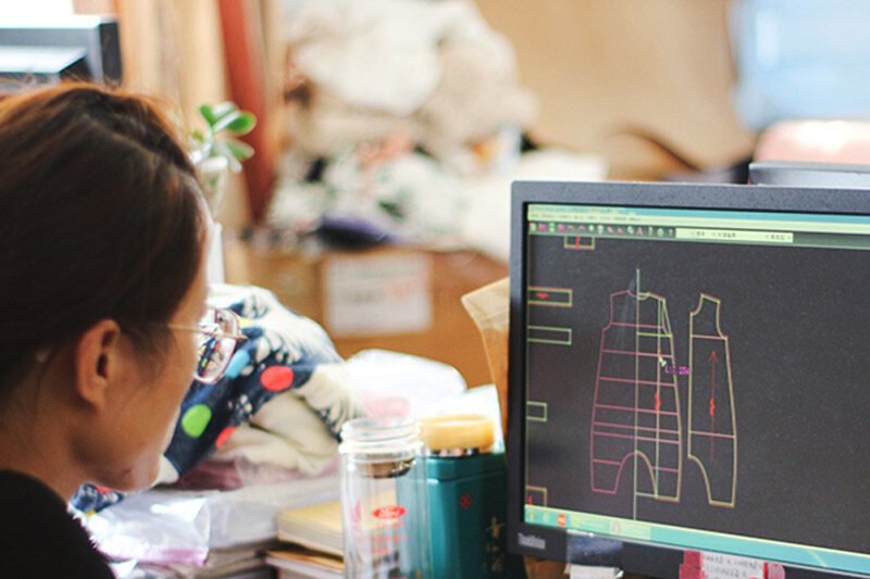 بعد اختيار القماش، نبدأ في تنفيذ النموذج الأولي وفق التصميم المحدد ومتطلبات العلامة التجارية.